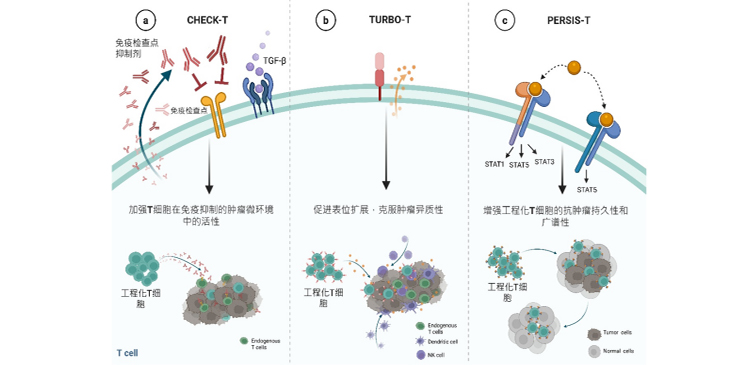 先進細胞裝甲平臺,通過裝備過繼性細胞療法(ACT)使其突破腫瘤微環境(TME)屏障及異質性,提升實體瘤治療的安全性、浸潤性和持久性。